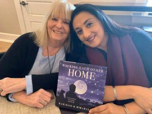 SIYLI’s Board of Directors Mirabai Bush (left) and Amishi Jha (right) with the book Mirabai co-authored “Walking Each Other Home.”